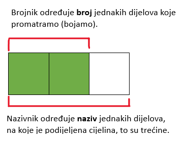 - U nazivnik pišemo na koliko je ukupno dijelova podijeljen lik.